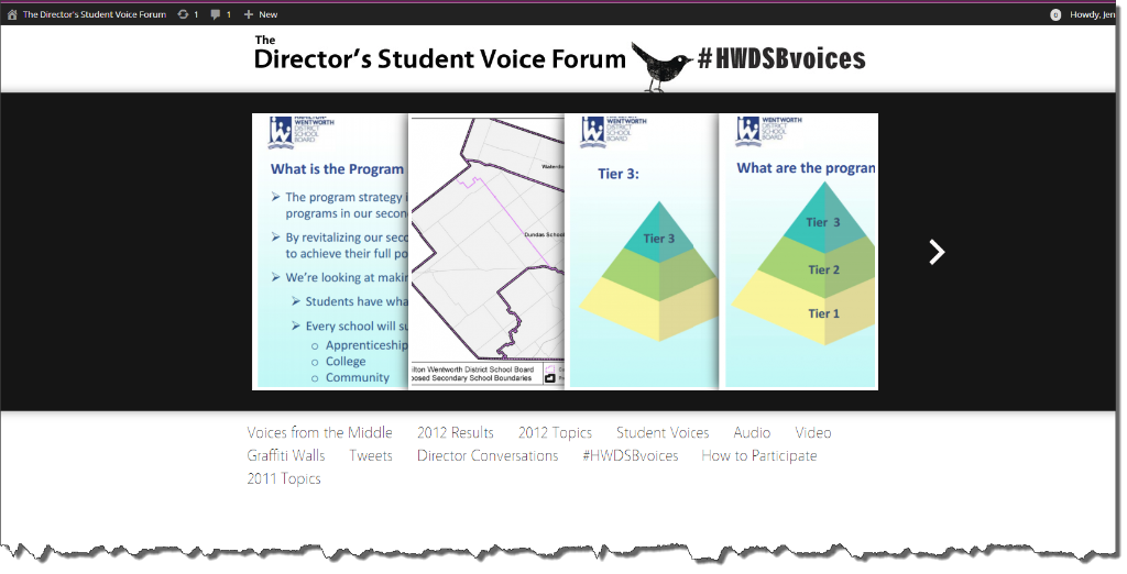 If you’ve visited the Director’s Student Voice Forum before, and if you visit it again, you’ll notice that it has taken on a new look and feel. You might ask why I would do this, or, maybe you wont. What you might not understand, though, is that this blog takes up an exponential amount of my time and energy. I love it. I’m committed to it. It’s my creation. It’s my “Space Jam”. But, I can’t stress this enough, it consumes me. The time it takes to curate, design,and maintain this blog is off the charts. I believe in my heart of hearts that this forum is absolutely vital to ensure that students have a voice beyond their schools and that they can and will be heard from afar and by those that can make change. Without this blog, students would be expressing their thoughts within the bubbles of their own school communities and lost to the greater student body of the entire board. My vision is that students will look beyond seeing themselves as a student of “——” high school and start seeing themselves as a student of @HWDSB. All students fall under the same umbrella of the board and we have the power to connect each and every one of them through digital media tools such as our @HWDSB Commons (a WordPress / Buddypress Social Learning Network). We are fortunate in @HWDSB in that we have a unique grass roots created social learning network such as the @HWDSB Commons where students can connect beyond the temporal and geographical realities of this daily learning grind. I am proud to say that I was part of creating (and primarily testing at a Secondary level) the @HWDSB Commons but need to give props here to Jared (@mrjarbenne). Without him, the @HWDSB Commons would not exist as it is today and I hope that all within @HWDSB understand that this is a vision come reality and that it gives all students an opportunity to connect, network, collaborate, and share both within their schools and beyond. The “Proof of Concept” became a reality. The awards have been given and it’s time for the platform to shine!